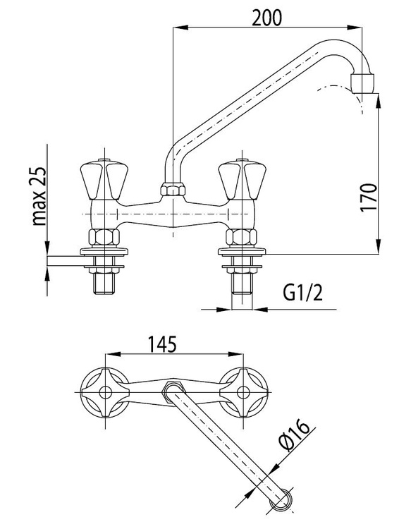 Bateria STANDARD stojąca dwuotworowa zlew -umywalka