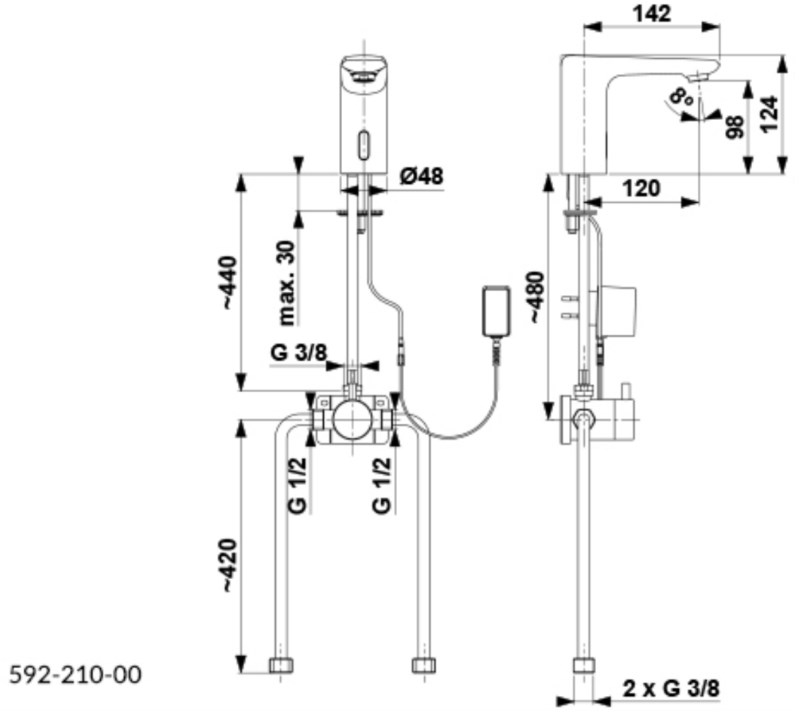 | Zależnie od potrzeb i możliwości danego pomieszczenia, baterię można podłączyć do zasilania za pomocą zasilacza 230V lub 4 baterii typu AA, dzięki temu łatwo można ją zamontować w funkcjonującej już łazience, bez potrzeby zmian instalacji.