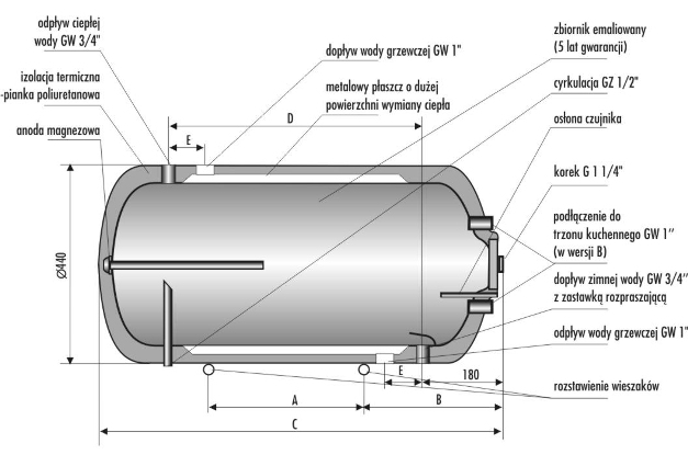 Emalia + anoda magnezowa |