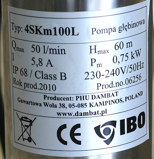 Pompa głębinowa 4SKm100LPompa głębinowa przeznaczona do zaopatrywania małych domów, działek w wodę. Pompa może pracować w odwiertach