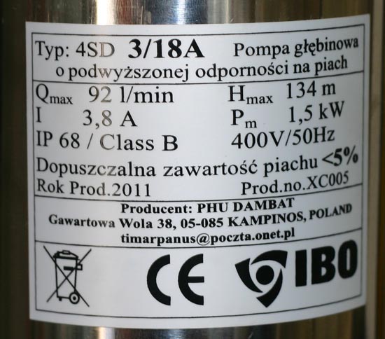 Minimalna średnica odwiertu 100 mm. Pompy mogą pompować wodę z zawartością piachu do 5%.