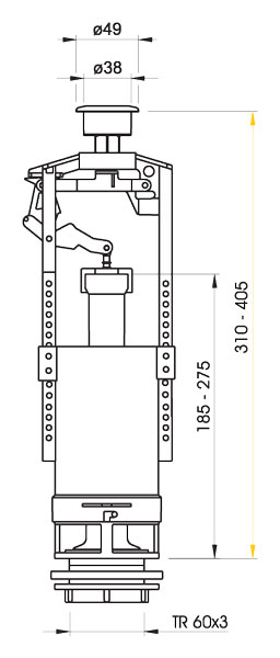 Dzięki regulacji wysokości można go dopasować do większości spłuczek.