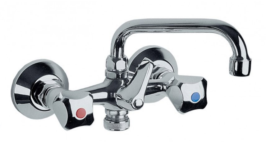 Bateria zlewozmywakowa ścienna, chrom, głowice suwakowe, wylewka typ "s" Ø16mm długość wylewki 160mm dodatkowe przyłącze do pralki / zmywarki G 3/4"