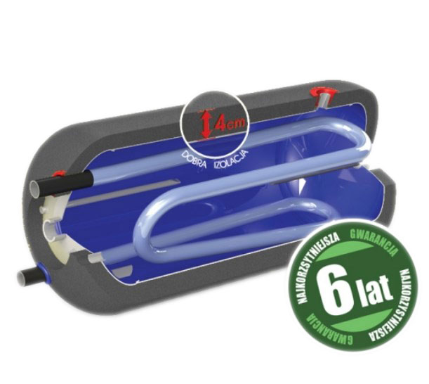 Urządzenia te mają zbiorniki ciśnieniowe na wodę użytkową wykonane z blachy stalowej pokrytej wewnątrz warstwą specjalnej, wysokotemperaturowej emalii ceramicznej, która tworząc szklistą powłokę chroni je przed korozją. Dodatkowym zabezpieczeniem antykorozyjnym zbiorników jest anoda magnezowa, której działanie opiera się na różnicy potencjałów elektrochemicznych materiału zbiornika i anody.