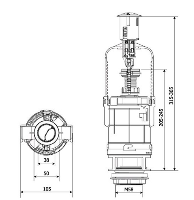 Produkt markowy - polskiFabrycznie nowy zawór spłukujący do większości spłuczek ceramicznych z otworem w górnej pokrywie zbiornika 36mm.Średnica gwintu na dole zaworu - 56mm.Dzięki regulacji wysokości można go dopasować do większości spłuczek.