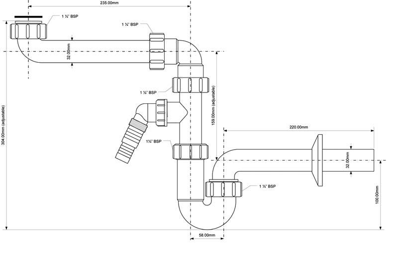 Półsyfon umywalkowy rurowy 1 1/4" x 32mm,