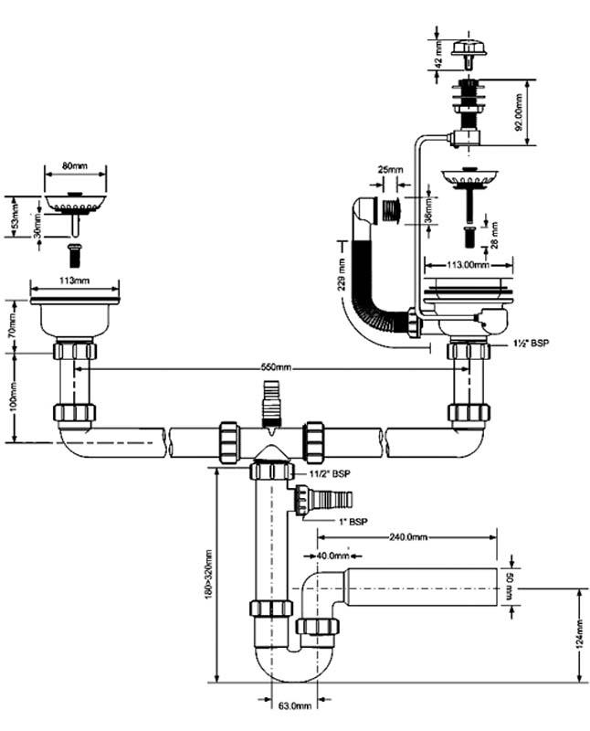 11/2"x50mm z podłączeniem do pralki i zmywarki,
