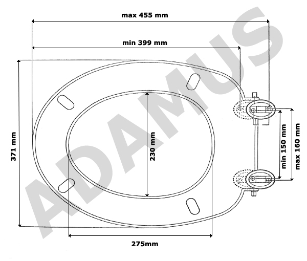 Deska sedesowa twarda wykonana z polipropylenu. Dzięki zastosowaniu nowoczesnych śrub o możliwości regulacji aż o 5,6 cm pasuje ona do większości misek ustępowych dostępnych na rynku.