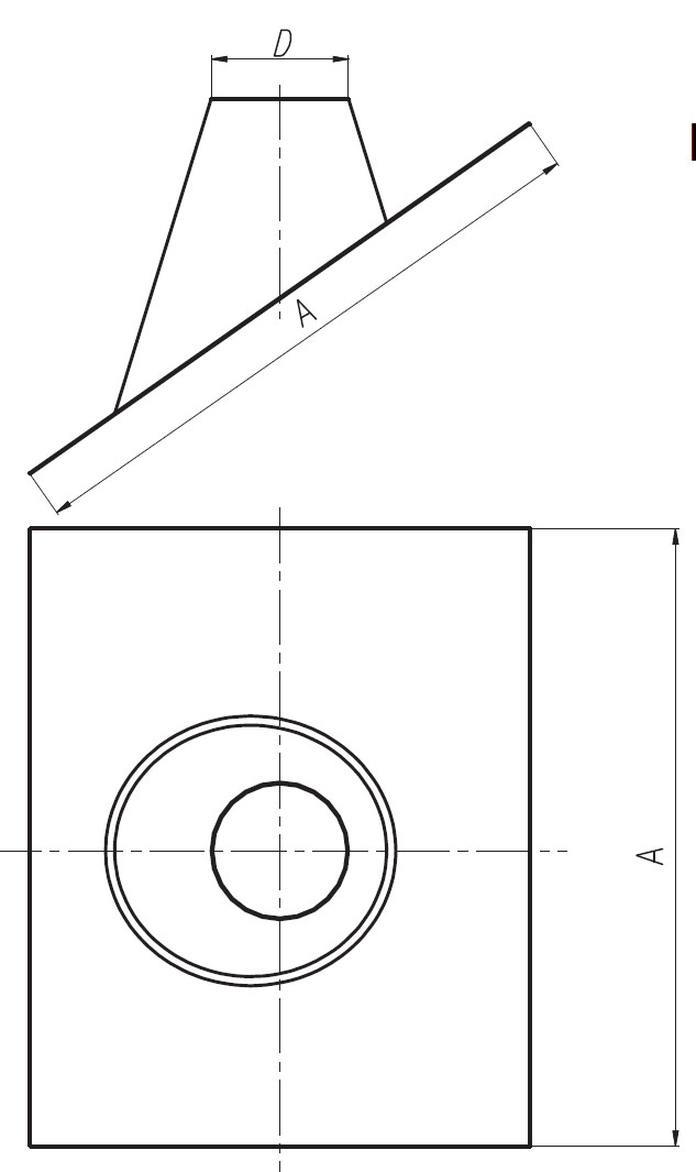 SX-TDN60/100PD45 - Przepust dachowy nierdzewny o wymiarze A: 500mm oraz wymiarze D: 120mm