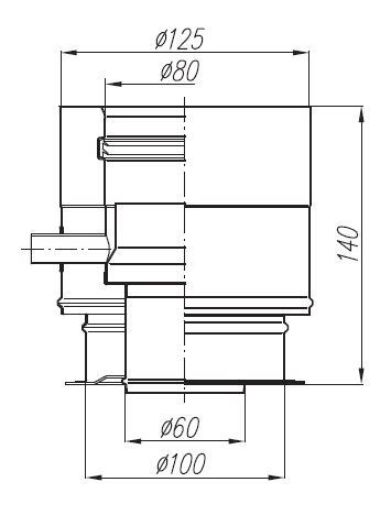 - redukcja z wymiaru Ø60/100 na Ø80/125 wraz z odskraplaczem
