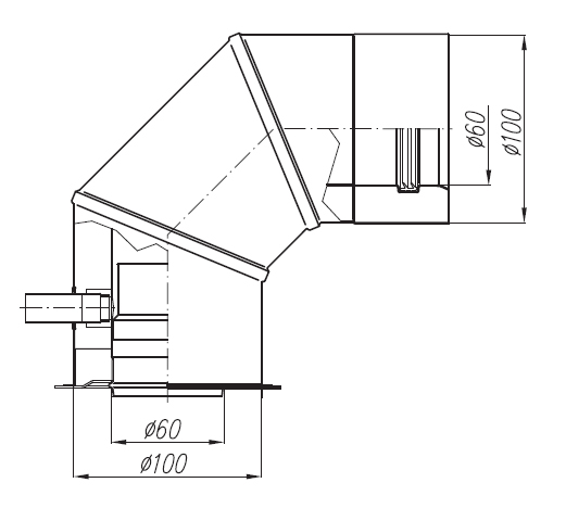 - kolano 90° o średnicy Ø60/100 wraz z odskraplaczem