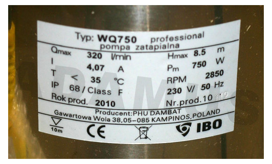 Pompa zatapialna WQ750 ProfessionalDane techniczne: