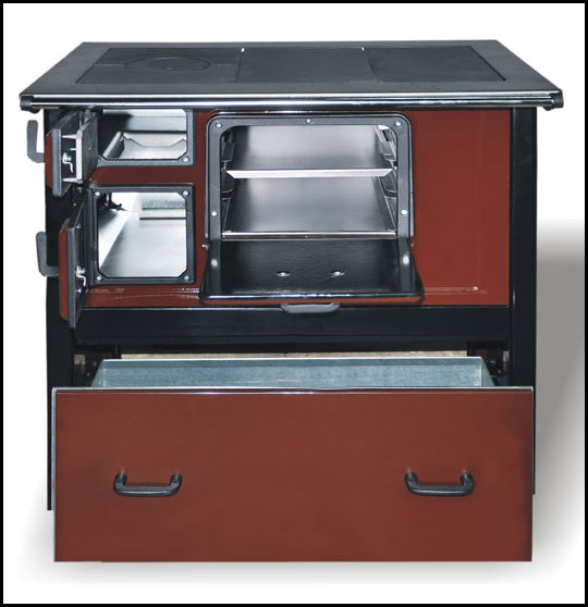 W zależności od umieszczenia otworu wylotowego spalin produkuje się kuchnie, tzw. lewe ( L ), prawe