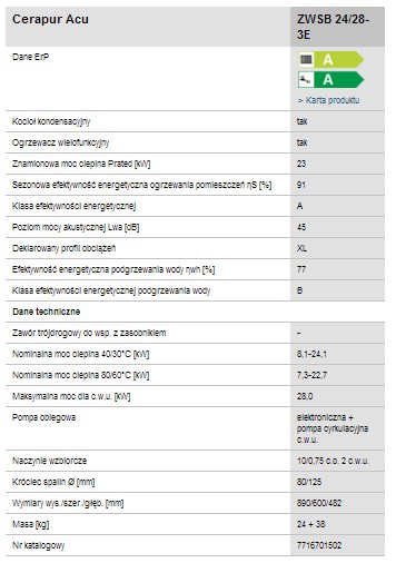 w najmniejszym opakowaniu. Kompaktowy, wiszący kocioł kondensacyjny wyposażony w 42 litrowy zasobnik, zapewnia maksymalną ilość ciepłej wody przy minimalnych wymiarach. Zasobnik Cerapur Acu podgrzewa ciepłą wodę w sposób warstwowy. Ogrzana woda znajduje się w górnej części zasobnika a zimna - w dolnej. Dzięki temu ciepła woda jest natychmiast dostarczana nawet do kilku punktów poboru. Koszty przygotowania ciepłej wody w zasobniku Cerapur Acu są znacznie niższe niż w tradycyjnych podgrzewaczach c.w.u