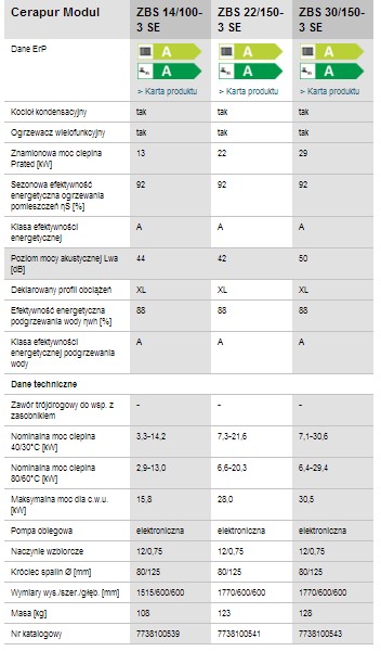 Cerapur Modul to najnowocześniejsza technika grzewcza do obsługi c.o. i ciepłej wody użytkowej połączona w jednym urządzeniu. Takie rozwiązanie szczególnie polecane jest do montażu w domkach szeregowych i jednorodzinnych. Najnowsza technika ładowania warstwowego zasobnika, przyczynia się do utrzymania wysokiego komfortu ciepłej wody, przy znacznie zredukowanej pojemności zasobnika. Wydajność ciepłej wody nawet ponad 36,3 l/min. (dla modelu ZBS 30/150S-3SE).