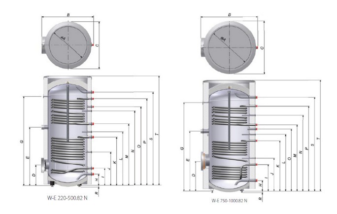 | Powierzchnia wężownicy górnej | m2 | 0,75 | 0,92 | 0,92 | 1,6 | 1,47 | 1,47 | |