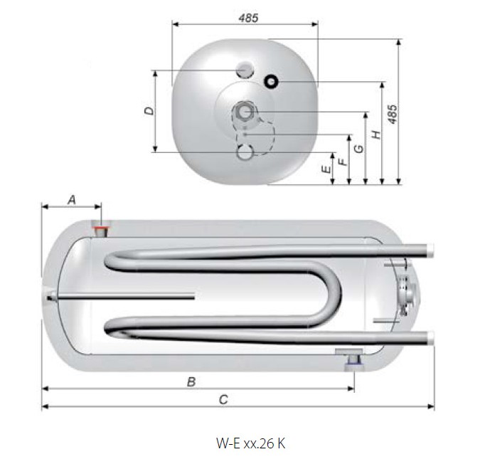 Do ogrzewania wody wykorzystywana jest podwójna wężownica o dużej powierzchni grzewczej, przez którą przepływa czynnik grzewczy z sieci centralnego ogrzewania. Taka konstrukcja oraz wymiary wężownicy umożliwiają bardzo szybkie podgrzewanie wody w całej objętości zbiornika.