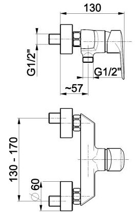 Bateria, mimośrody 10/57 -2 szt., rozety -2szt. z uszczelkami,instrukcja obsługi i montażu baterii jednouchwytowych ściennych.