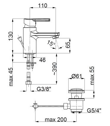 Bateria, spust sterowany metalowy 5/4" kpl. z cięgnem -1 szt. komplet mocujący z podstawką, przyłącza elastyczne M10x1/G3/8 L=350 mm, kluczyk do perlatora, instrukcja obsługi i montażu bat. jednouchwytowych stojących.