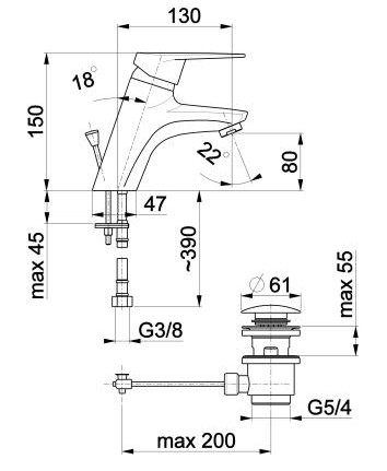 Bateria, przyłącza elastyczne M10x1/G3/8 - 2szt., spust sterowany 5/4", cięgno skręcane kpl., komplet mocujący, klucz z tworzywa sztucznego, instr. montażu i obsługi baterii jednouchwytowych stojących z gwarancją,