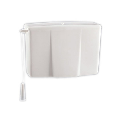 Spłuczka górnopłuk, wyposażona w tradycyjny zawór spustowy, działający na zasadzie
