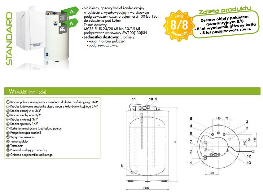 MCR3 PLUS 24/28 MI lub 30/35 MI podgrzewacz warstwowy SW100(130)SN