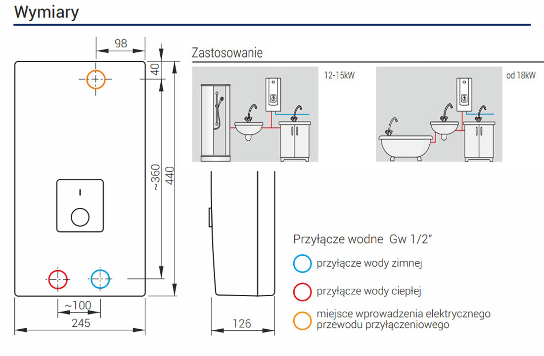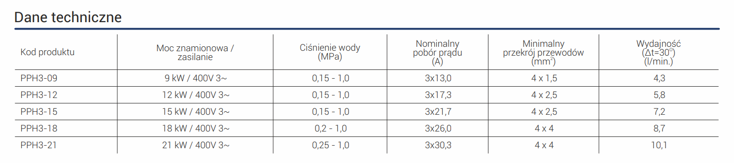 dostępne moce: 9 / 12 / 15 / 18 / 21 kW