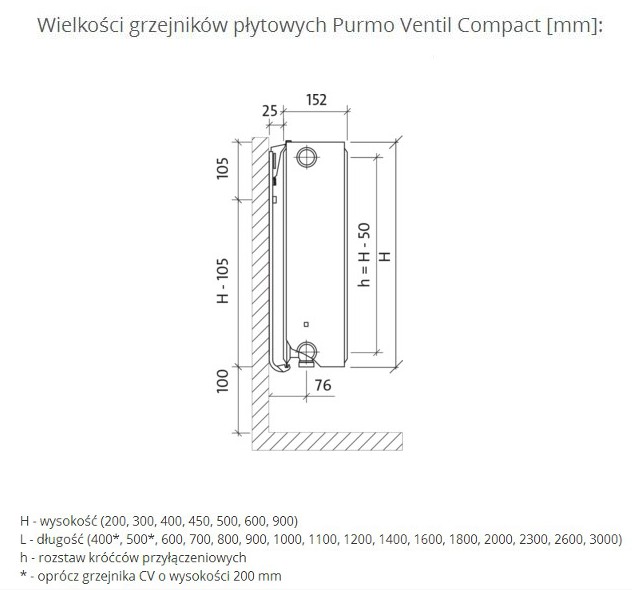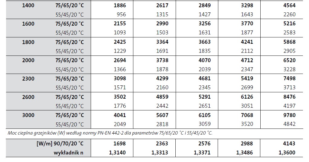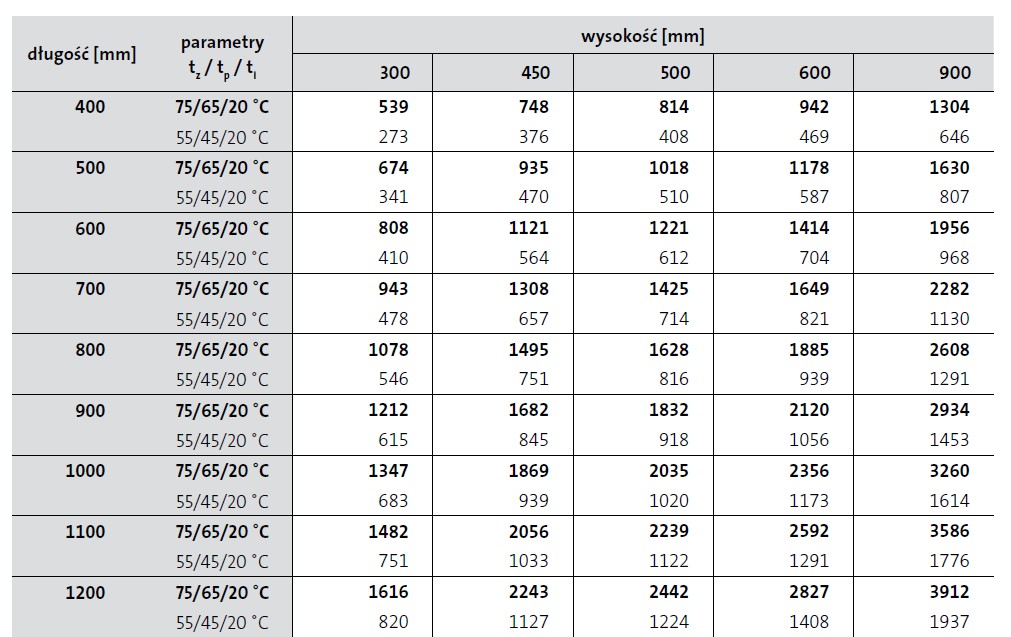 | Wysokość grzejników: | 200, 300, 400, 450, 500, 600, 900 mm |