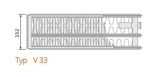 Grzejniki typu V wyposażone są w cztery boczne i dwa dolne otwory przyłączeniowe z gwintem wewnętrznym ½″.