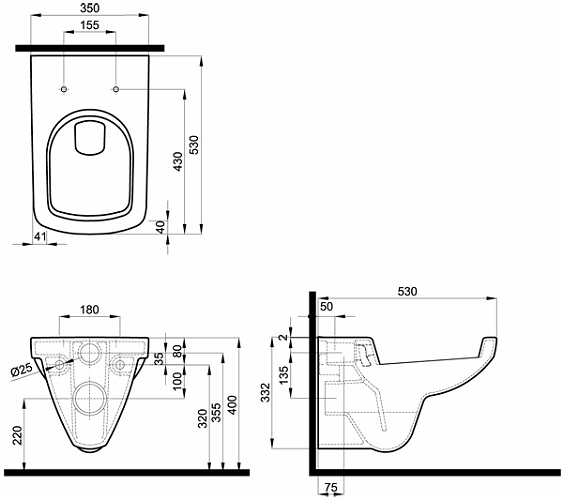 Miska wisząca Koło NOVA PRO, prostokątna, lejowa