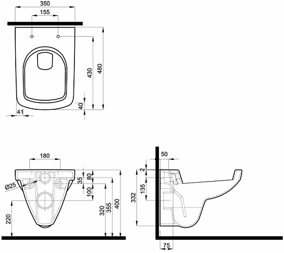 Miska wisząca Koło NOVA PRO prostokątna lejowa krótka.