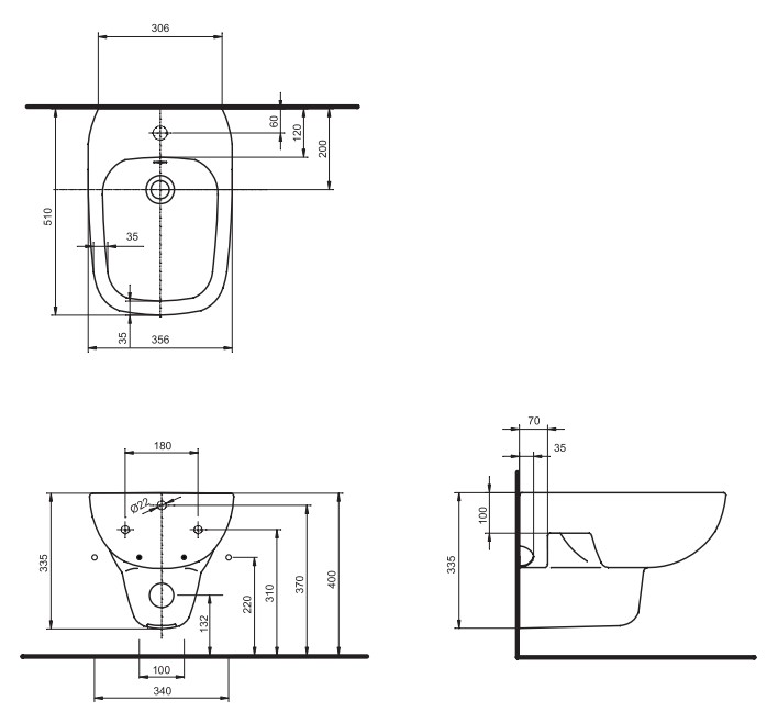 Bidet wiszący Koło STYLE z jednym otworem na baterię.