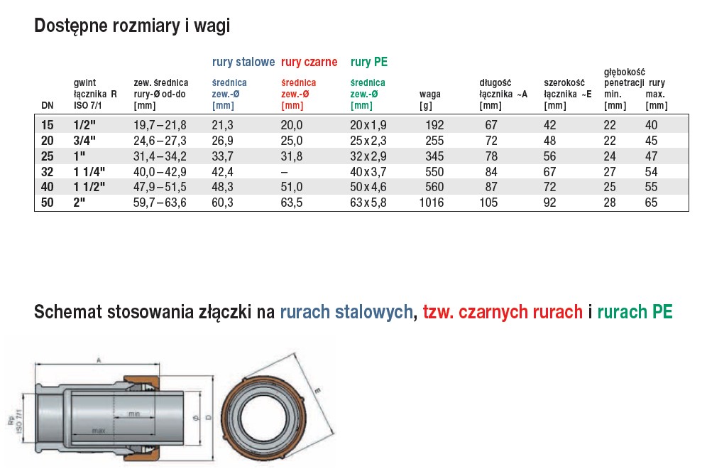 Dostępne średnice rur: 1/2" – 2" dla rur ze stali, 20 mm – 63,5 mm dla tzw. czarnych rur i rur PE.