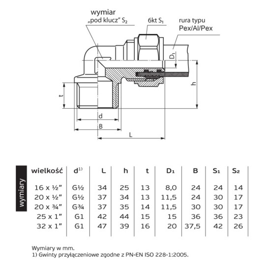 Szczegółowe wymiary kolanka dostępne są w tabeli znajdującej się w galerii produktu.