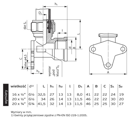 korpus, nakrętka: mosiądz (CuZn40Pb2) z powłoką nikiel;