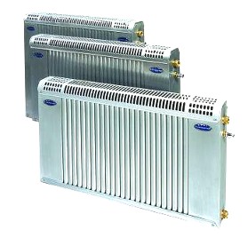 Charakterystyka budowy:Grzejniki zbudowane są z pakietu poziomych rur miedzianych połączonych pionowymi kolektorami oraz układu pionowych żeber aluminiowych tworzących przednią i tylną ścianę grzejnika. Grzejnik w każdym wymiarze zabudowany aluminiowymi osłonami nadającymi grzejnikom charakter nierozbieralny. Całkowity brak elementów stalowych.
