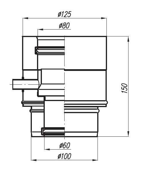- przejście na typowy element o średnicy Ø80/125 wraz z odskraplaczem,