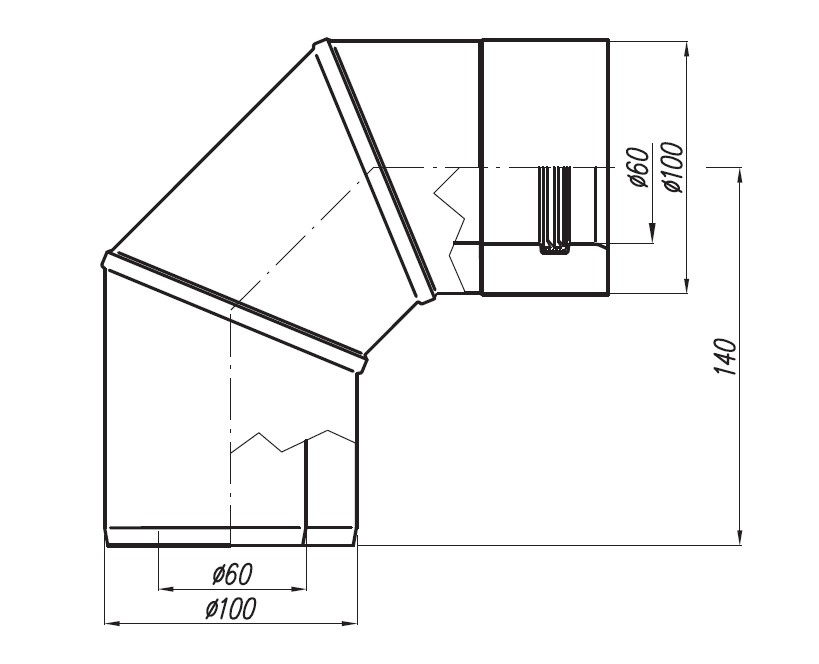 (SX-TDN60/100K90)- 60/100 kolankowy srebrny