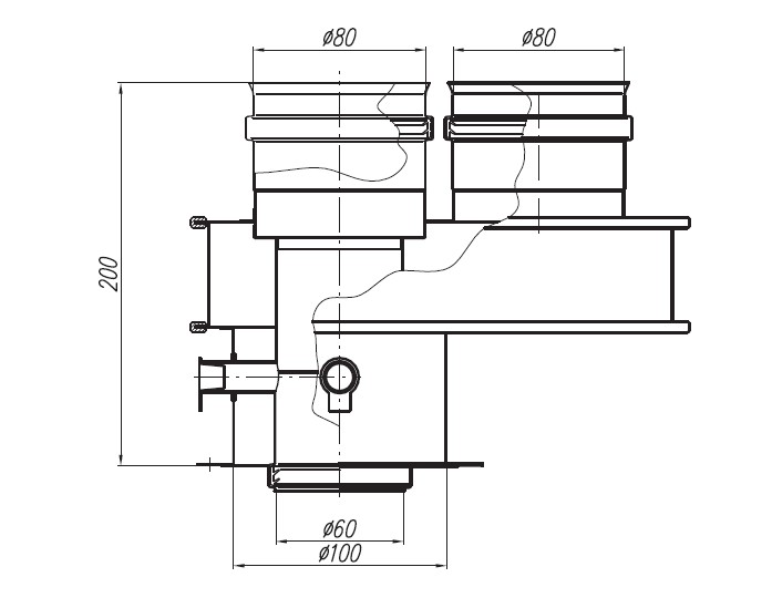 - adapter rozdzielczy owalny Ø60/100 na 2xØ80 z króćcami pomiarowymi,