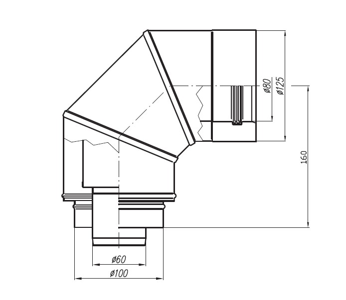 - kolano z redukcją z wymiaru Ø60/100 na Ø80/125