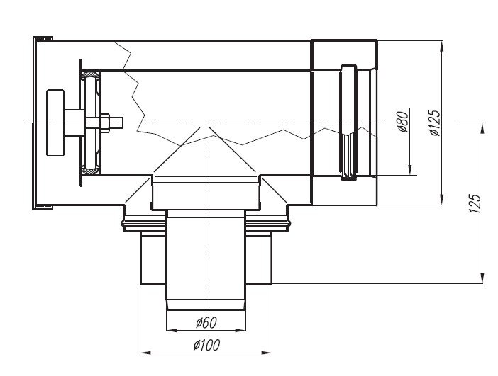 - trójnik redukcyjny z wymiaru Ø60/100 na Ø80/125