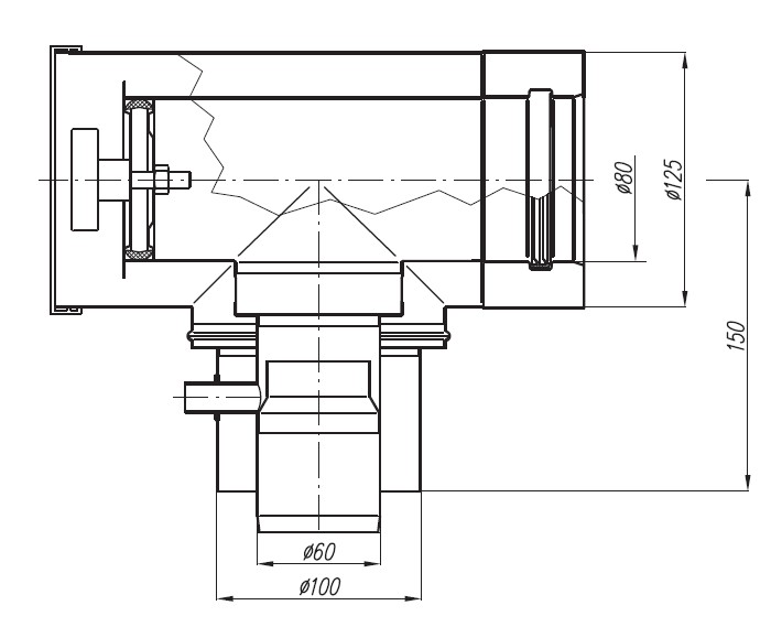 - trójnik redukcyjny z wymiaru Ø60/100 na Ø80/125 z odskraplaczem
