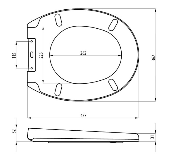 Deska występuje z zawiasem wolnoopadającym metalowym ze stali nierdzewnej, z funkcją szybkiego wypinania. Mechanizm wolnoopadający gwarantuje ciche i delikatne opadanie deski. Deska posiada w swej strukturze dodatek antybakteryjny, który zabija bakterie i drobnoustroje.