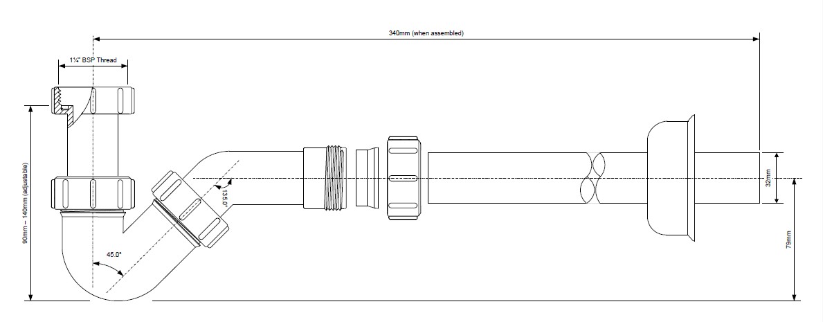 HC23 - syfon bidetowy rurowy z przedłużką i rozetą
