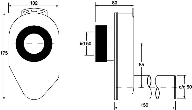 HC-UP50 - syfon pisuarowy podtynkowy odejściem poziomym
