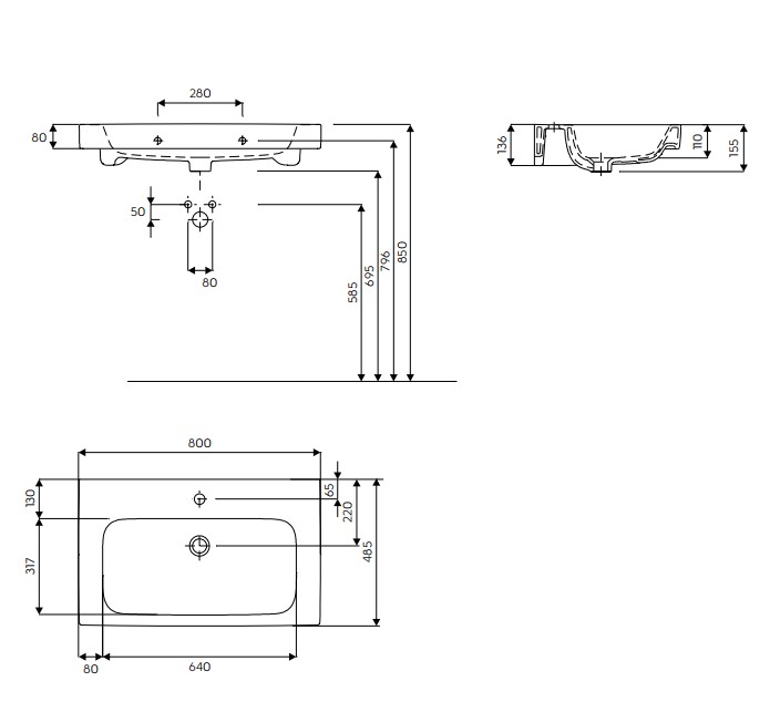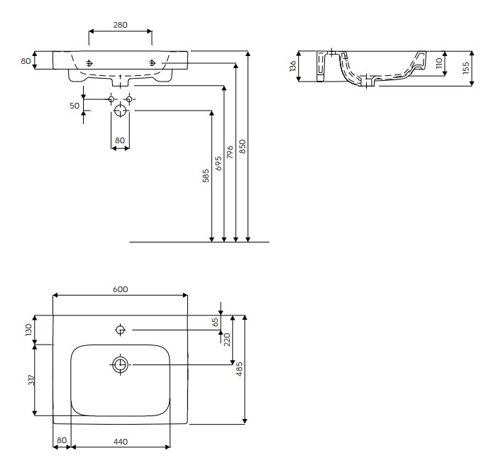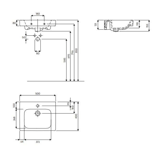 Umywalka Koło MODO jest mocowana na śrubach. Posiada możliwość postawienia na blacie przy zachowaniu montażu do ściany.