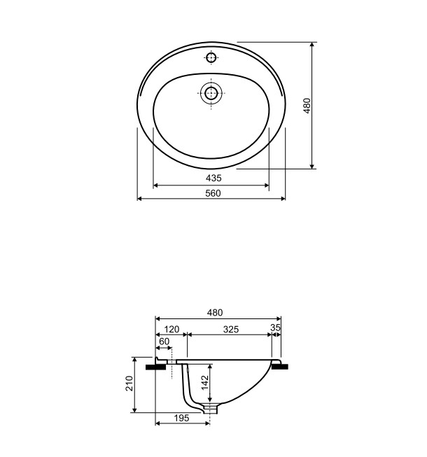 Umywalka wpuszczana w blat Koło NOVA z otworem i z przelewem