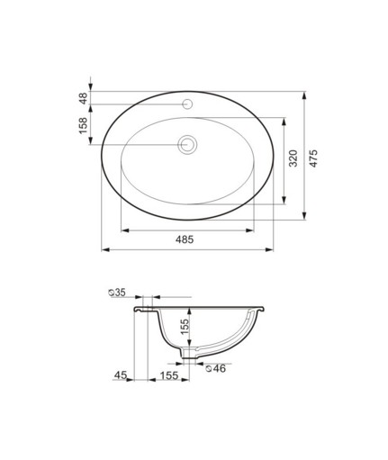 Umywalka wpuszczana w blat Cersanit GAMMA z otworem i z przelewem