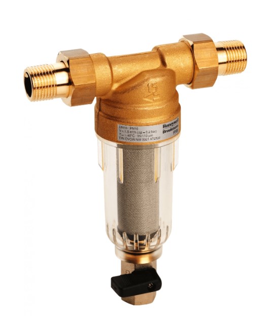 Filtr HONYWELL należy do filtrów z tzw. opłukiwaniem siatki filtracyjnej. Filtr ten zapewnia ciągłe filtrowanie wody zatrzymując na siatce filtracyjnej zanieczyszczenia tj. rdzę, piasek, strzępy konopi itp. Zanieczyszczenia gromadzone są na dnie przezroczystej obudowy i mogą byćłatwo usunięte przez chwilowe otwarcie zaworu kulowego. Ze względu na niewielkie rozmiary filtr może być instalowany tam, gdzie jest mało miejsca do zabudowy.
