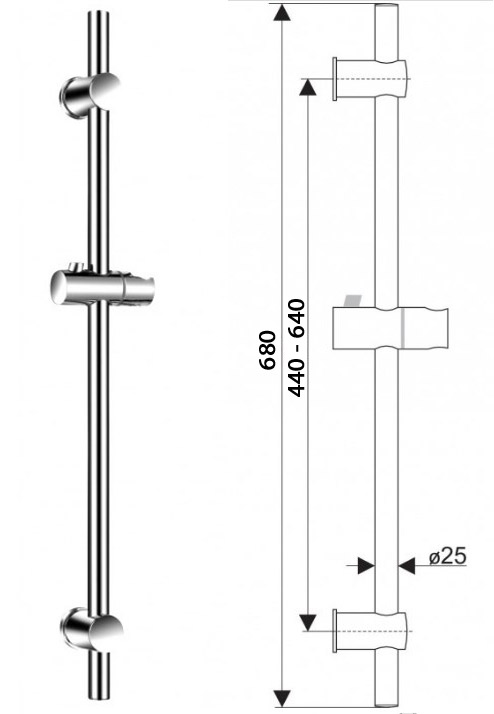 Metalową baterię z wylewką o długości 210mm, Słuchawkę prysznicową,
